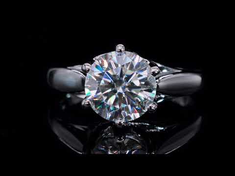 BOYA 1.11 CTW Round Moissanite Six Prong Engagement Ring in 18K White Gold Plated
