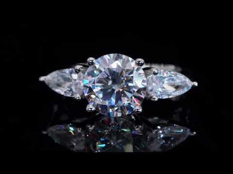 BOYA 2.00 CTW Round Moissanite Three Stone Engagement Ring in 18K White Gold Plated