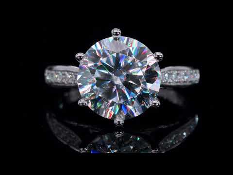 BOYA 2.09 CTW Round Moissanite Six Prong with Side Accents Engagement Ring in 18K White Gold Plated