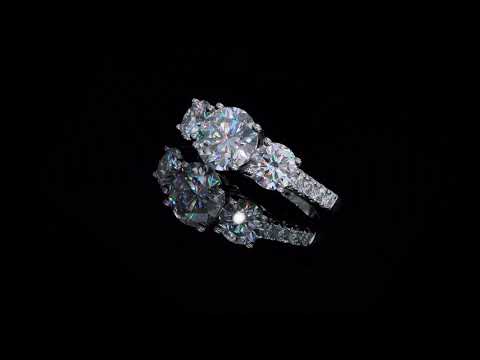 BOYA 2.66 CTW Round Moissanite Three Stone with Side Accents Engagement Ring in 18K White Gold Plated